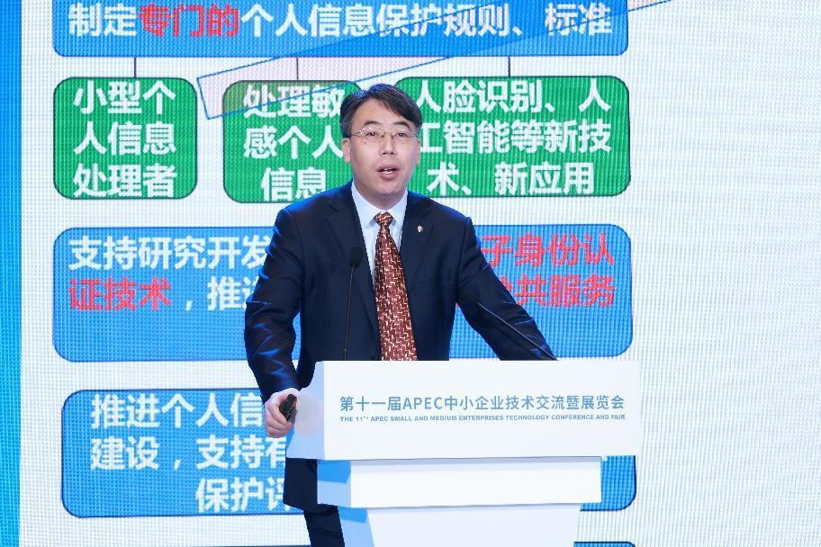 金克勝重點結(jié)合中小企業(yè)創(chuàng)新發(fā)展與知識產(chǎn)權(quán)保護,就最高法“司法助力中小微企業(yè)發(fā)展20條”進行了深入解讀。Victor Cadena從商業(yè)與法律的視角對APEC 經(jīng)濟體數(shù)字市場的挑戰(zhàn)與趨勢提出了自己的獨到見解,認為促進數(shù)字連通性可以幫助APEC成員在后疫情時代實現(xiàn)更可持續(xù)的經(jīng)濟發(fā)展;孫軍工以“數(shù)字時代企業(yè)法律服務(wù)的變局與格局”為題目,指出以人為本是數(shù)字時代法治建設(shè)的根本要求,提出要用數(shù)據(jù)構(gòu)建科技、商業(yè)、法律三位一體的新型法律服務(wù)市場;左曉棟、韓光、侯戰(zhàn)斌則分別以“中小企業(yè)數(shù)據(jù)合規(guī)風(fēng)險及應(yīng)對”、“數(shù)字時代法律服務(wù)機構(gòu)助力專精特新企業(yè)健康發(fā)展”、“中小企業(yè)乘法之舟 創(chuàng)新發(fā)展逐浪前行”為主題發(fā)表了演講。