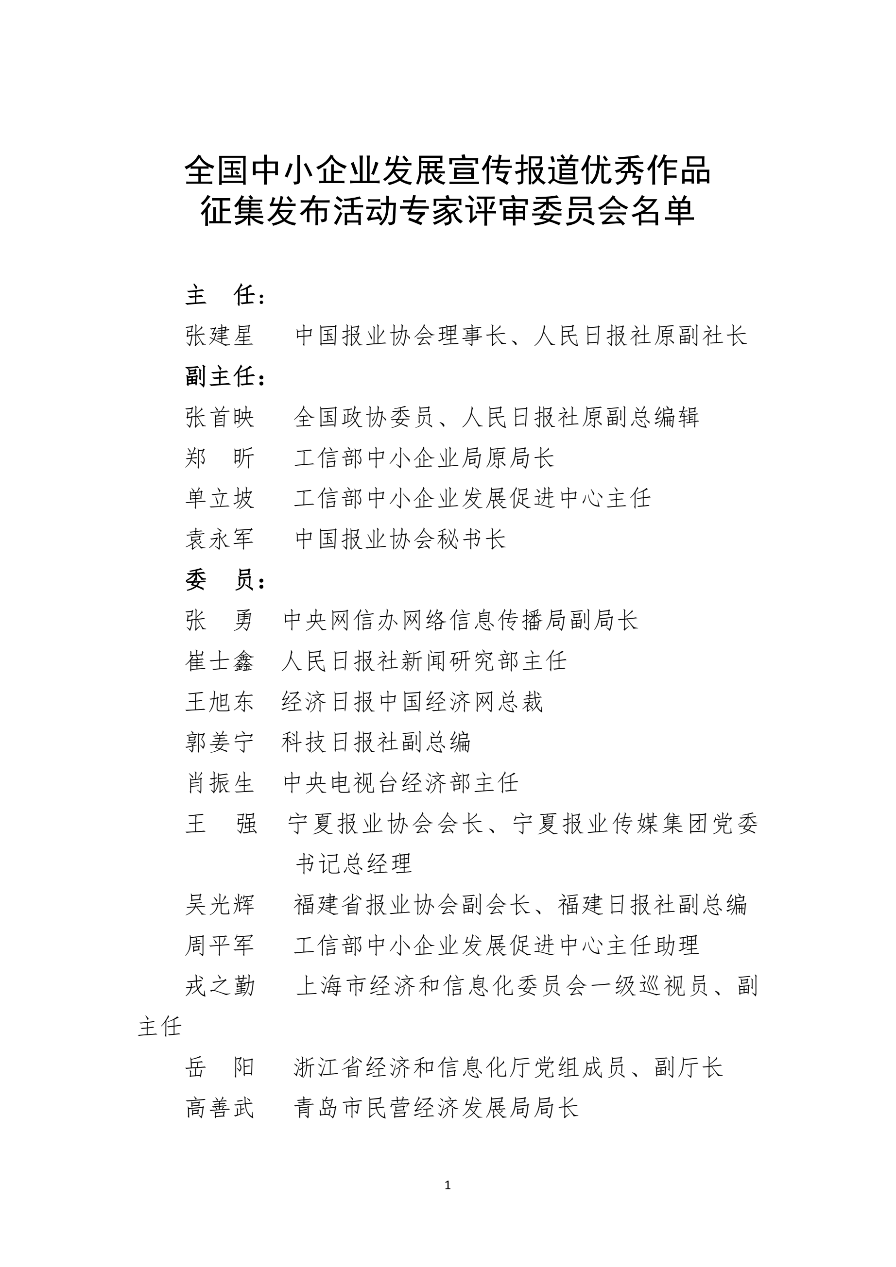 全國(guó)中小企業(yè)發(fā)展宣傳報(bào)道優(yōu)秀作品征集發(fā)布活動(dòng)專家評(píng)審委員會(huì)名單