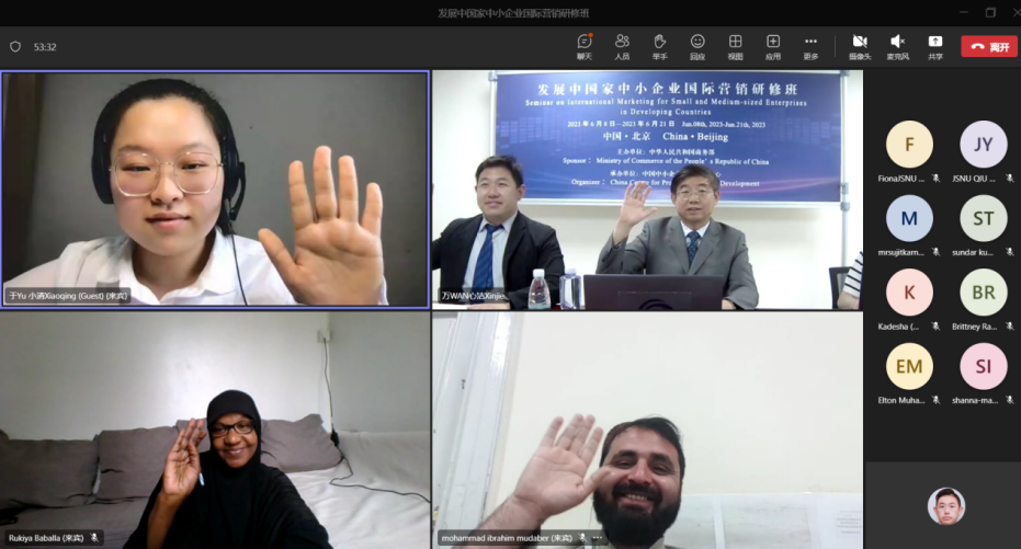 為了使學(xué)員全面了解中國中小企業(yè)國際營銷相關(guān)經(jīng)驗,此次研修班將從中國國情、中小企業(yè)國際合作、中小企業(yè)發(fā)展政策、中小企業(yè)數(shù)字化轉(zhuǎn)型等多個主題進(jìn)行深入探討,分享企業(yè)國際營銷的經(jīng)驗,并進(jìn)行在線考察交流及座談。研修班將進(jìn)一步促進(jìn)中國與各個發(fā)展中國家共享發(fā)展成果,分享發(fā)展經(jīng)驗,打開新思路,尋找合作切入點,促進(jìn)經(jīng)濟、貿(mào)易、技術(shù)等多方面合作,為促進(jìn)中外中小企業(yè)國際合作、經(jīng)貿(mào)交流搭建平臺。